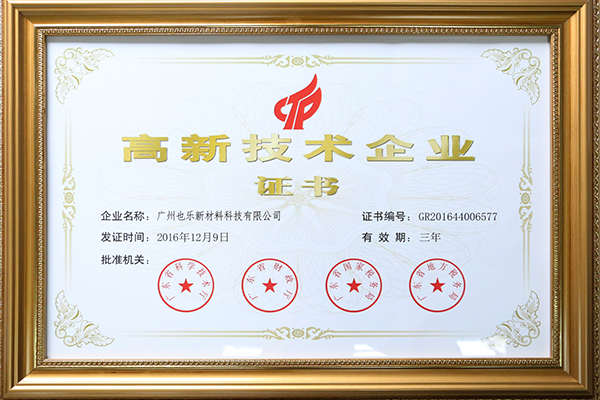 新豐也樂化學工業(yè)制造有限公司變更為廣東也樂新材料制造有限公司,并獲得廣東省供應鏈管理試點企業(yè);同年,廣州也樂新材料科技有限公司榮獲廣東省高新技術企業(yè)。